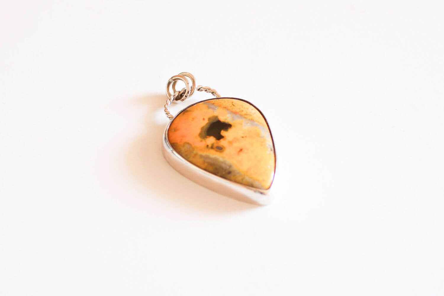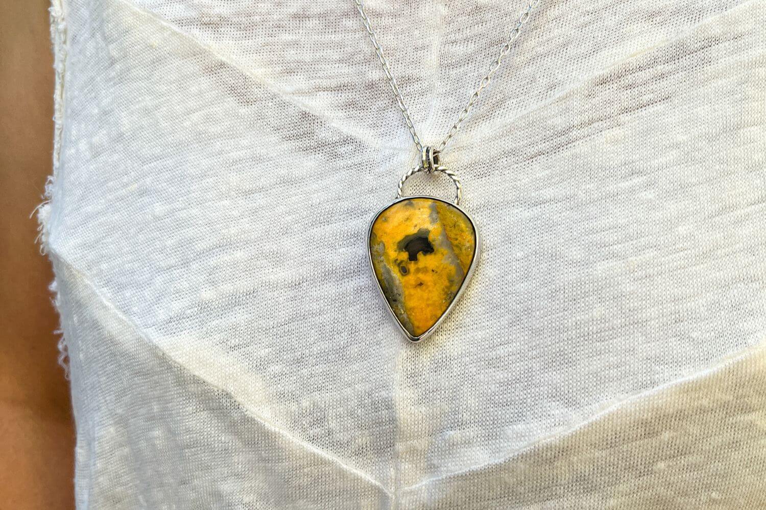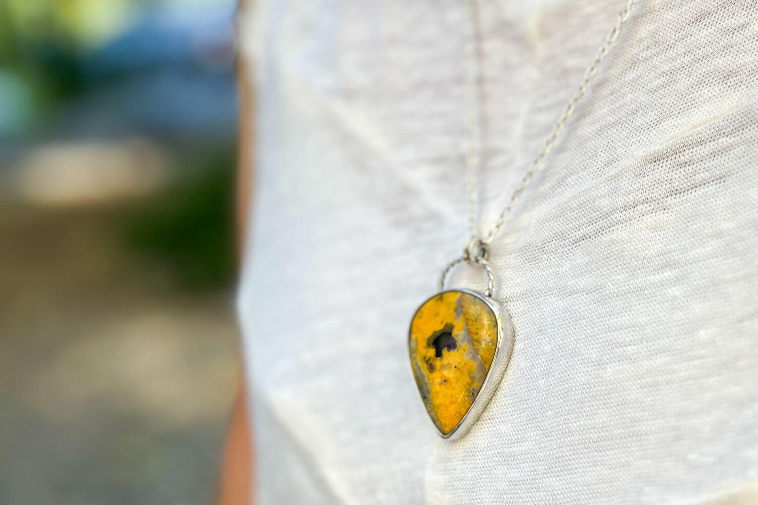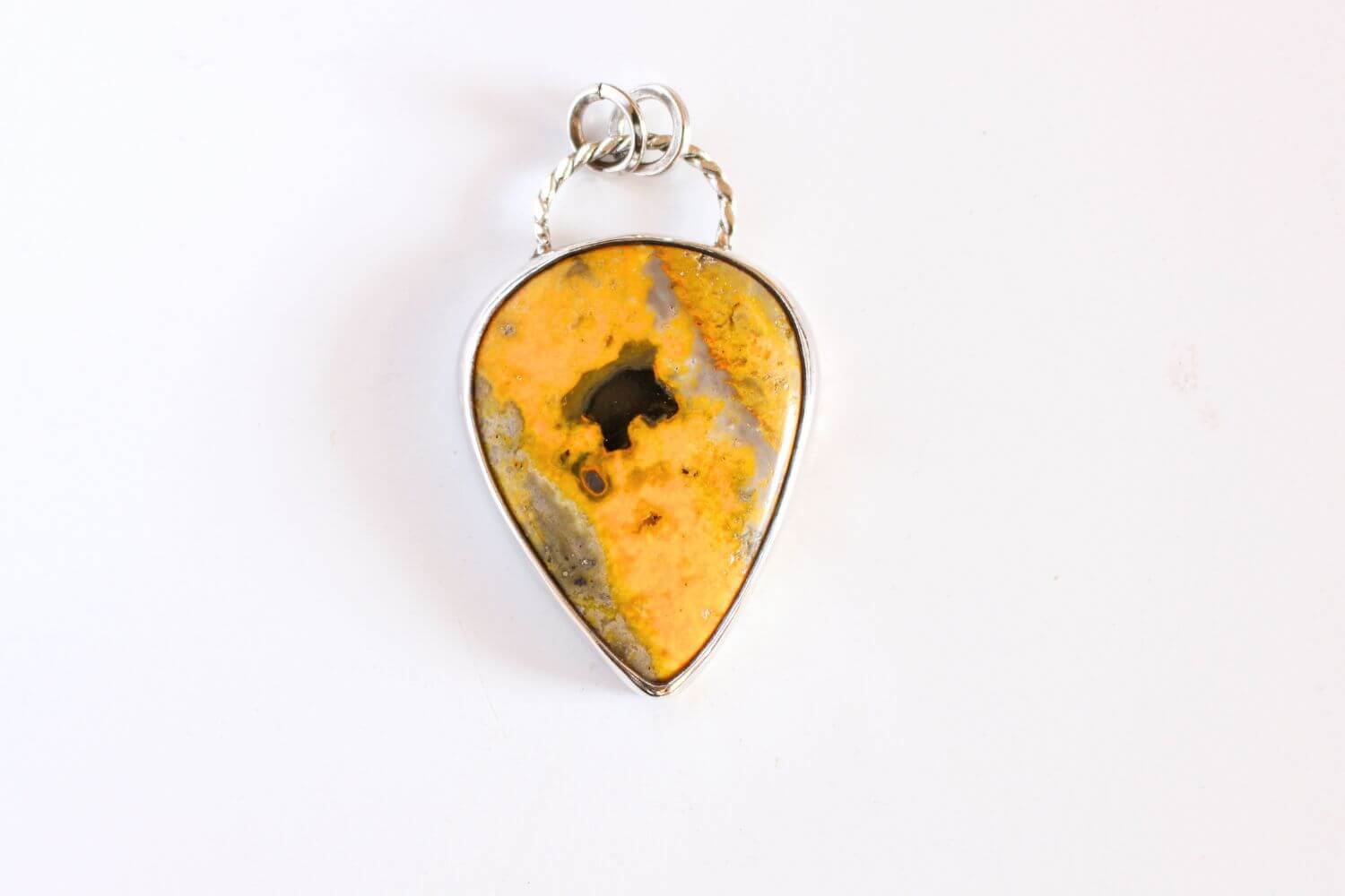 El Jaspe Abejorro es una gema poco común y profundamente vibrante, conocida por su combinación única de amarillos, negros y tonos naranjas que evocan movimiento, vitalidad y transformación. Este colgante en Plata 950 realza su energía natural, convirtiéndose en una pieza poderosa para quienes buscan claridad, fuerza interior y un impulso creativo en su camino.