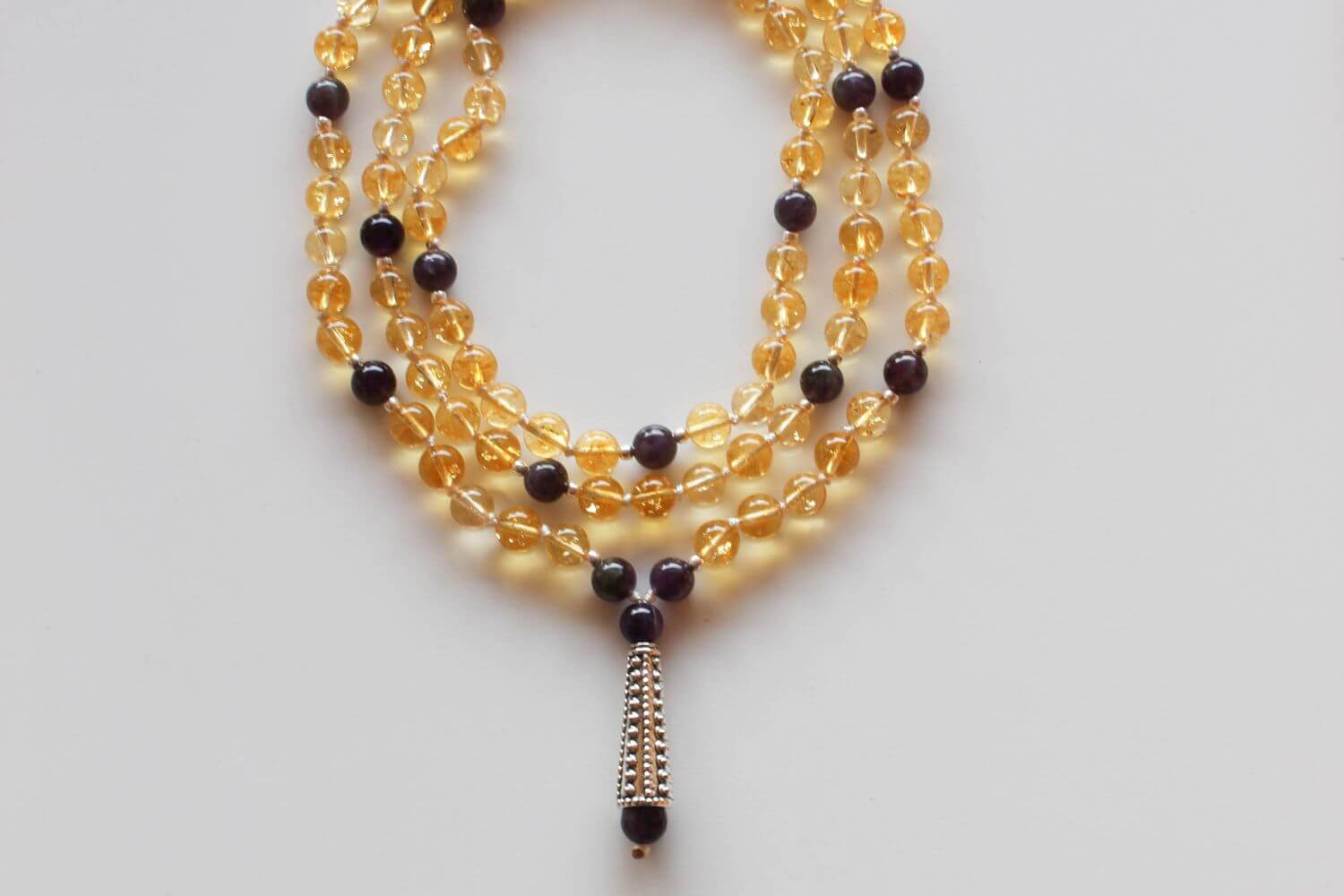 Japa Mala Citrino y Granate - Piedras naturales y mostacillas de plata