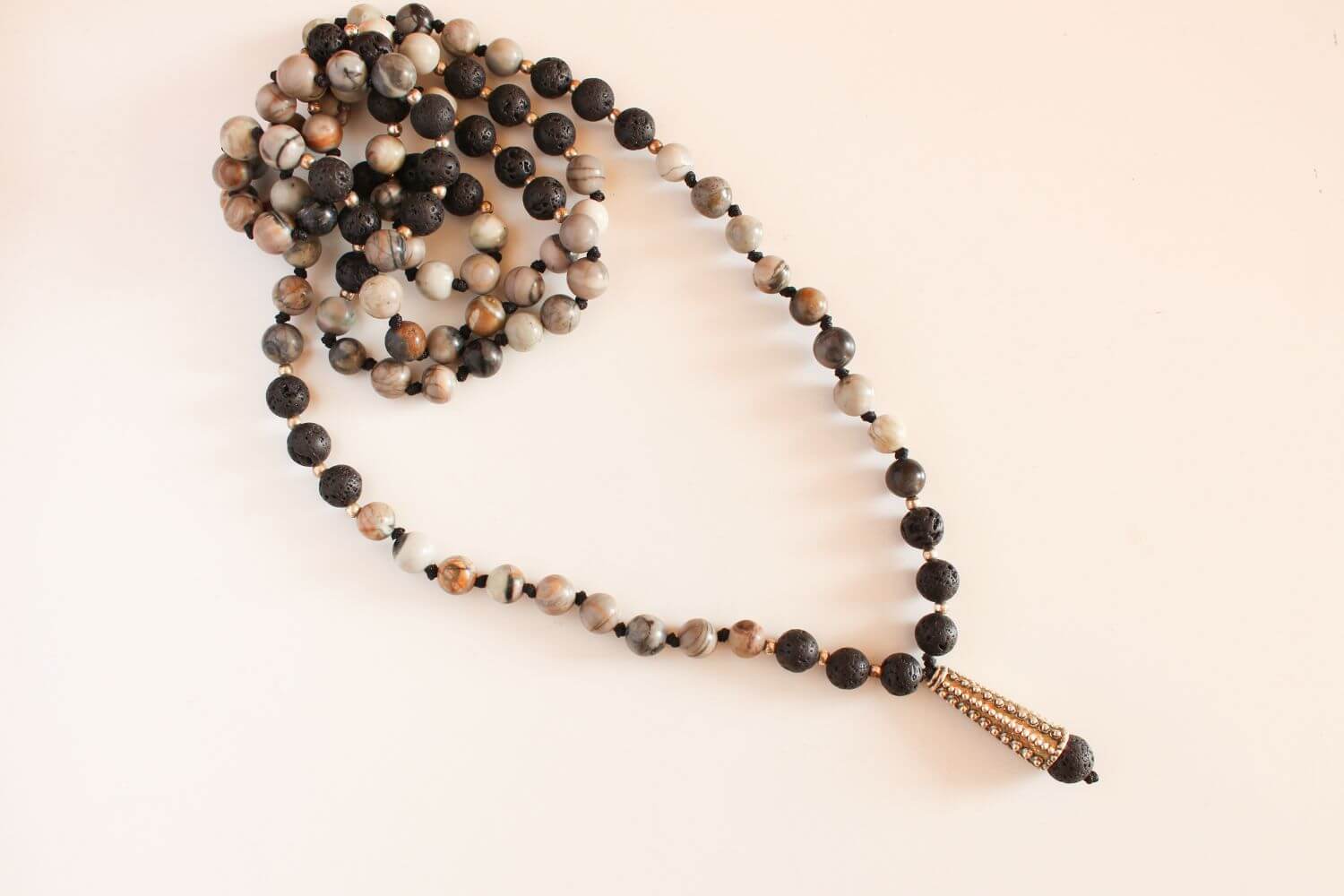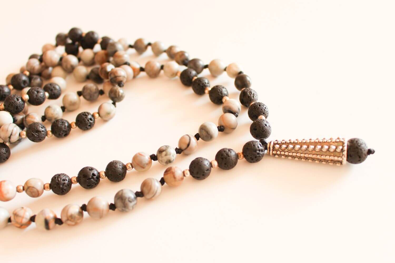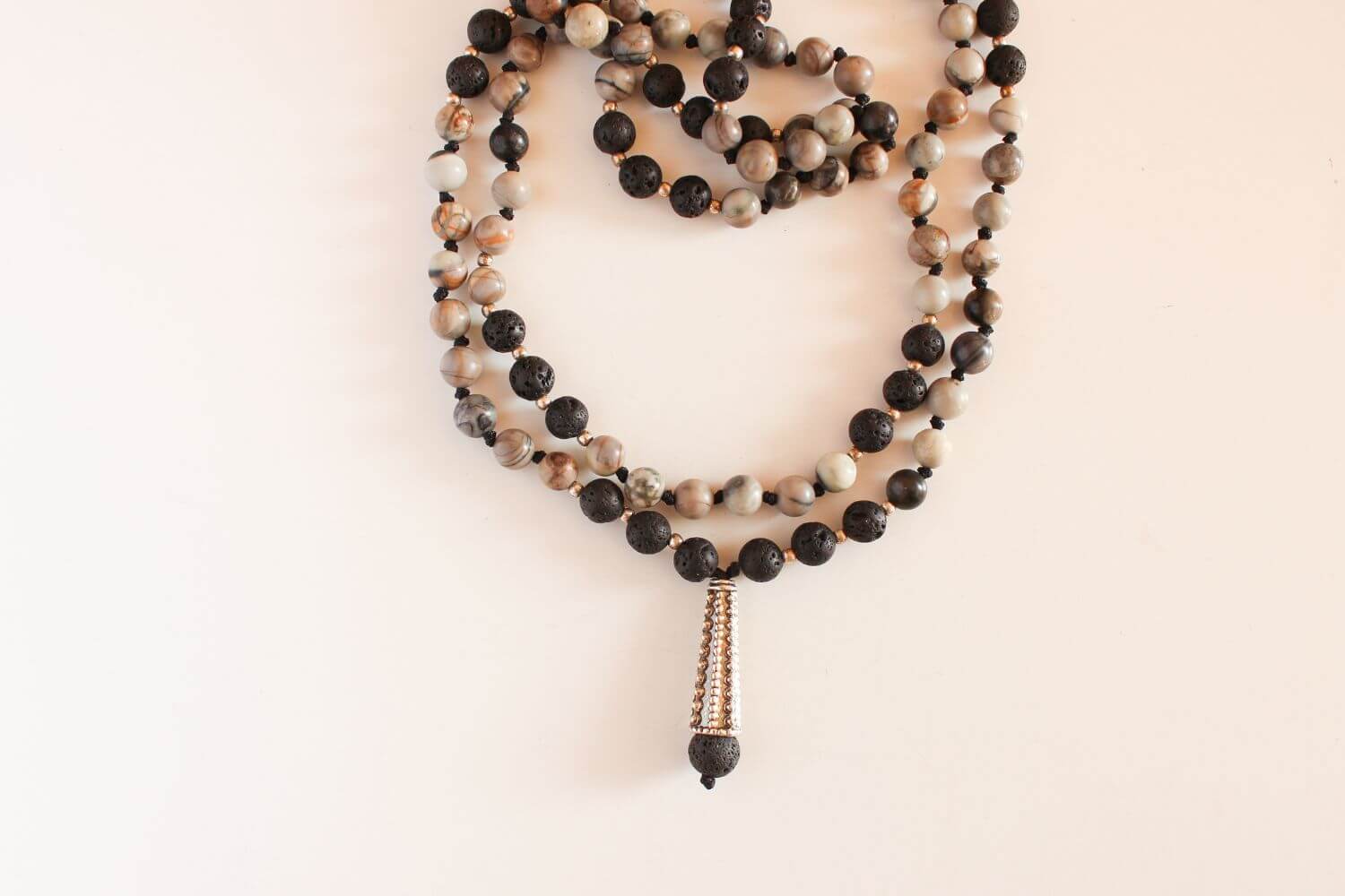 Japa Mala Piedra Volcanica con Jaspe - Piedras naturales y mostacilla de plata